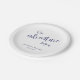 Diese einfachen typografischen Hochzeitszettel-Teller enthalten die Phrase "Unser Abenteuer beginnt" und Ihren eigenen Text in dunkelblau - von katz_d_zynes