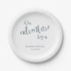 Diese einfachen typografischen Hochzeitszettel-Teller beinhalten den Satz "Unser Abenteuer beginnt" und Ihren eigenen aquamarinen Text - Koordinaten mit meinem "See in den Bergen unser Abenteuer beginnt" Hochzeitseinladungen und Koordinaten - von katz_d_zynes | Suchen Sie Stichwörter aquamarin+abenteuer unter der Registerkarte "Produkte" in meinem Geschäft, um zu sehen, die die Koordinierung von Waren aus Papier und Party