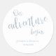 Diese einfachen "Unser Abenteuer beginnt" runden Hochzeitsaufkleber zeigen Ihren eigenen Text in staubblauer Farbe, der dem typografischen Element entspricht - von katz_d_zynes