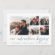 Dieses übersichtliche Design ist eine moderne und aufregende Ankündigungskarte für das abenteuerlustige Verlobung-Paar. Es besteht aus fünf quadratischen Fotos in einer Rasterkollage, in der "unser Abenteuer beginnt" in handgeschriebenem Schriftsatz dargestellt ist. Personalisieren Sie Ihre Ankündigung, Namen und weitere Details ganz unten.