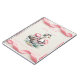 Eine anmutige Gans steht aufrecht und ist mit einem zarten Blumenkranz aus rosa Rosen und grünen Blätter geschmückt. Ein weiches rosa Band ist rund um den Hals gebunden und verleiht ihm ein charmantes und raffiniertes Aussehen. Die weißen Federn sind mit subtilen braunen Mustern dekoriert, während der helle orangefarbene Schnabel und die Füße einen bemerkenswerten Kontrast bilden. Der Hintergrund ist weich und elegant und ergänzt die sanfte Ästhetik der Gans.