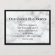 Der schwarze Bildschirmtext sagt: "Unser Büro ist umgezogen." Sie können Ihre liebende Ankündigungskarte mit dem Namen, der neuen Adresse und der Telefonnummer Ihres Unternehmens anpassen. Die Postkarte ist mit weißem Marmor und schwarzem Imitat gestaltet.