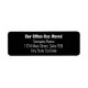 Diese schwarzen, sich bewegenden Ankündigungs-Etiketten haben eine Textvorlage, die Sie bearbeiten können, um eine benutzerdefinierte Nachricht zu zeigen. Es gibt vier Zeilen weißen Text, den Sie bearbeiten können. Wie gezeigt, die oberste Zeile liest unser Büro hat sich bewegt. Der Schriftart in der oberen Zeile hat eine fett gedruckte Schrift. Die zweite Zeile bezieht sich auf den Firmennamen. Die dritte Zeile bezieht sich auf die Straßenanschrift. Die letzte Zeile bezieht sich auf die Stadt, den Staat und die Postleitzahl.
