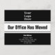 Oben befindet sich ein Display, das Sie durch Ihr Firmenlogo ersetzen können. In der Mitte befindet sich ein schwarzer Bildschirmtext für eine benutzerdefinierte Nachricht (angezeigt: Unser Büro hat sich bewegt). Am unteren Rand gibt es Zeilen von Text, den Sie bearbeiten können, um die neue Adresse zu teilen. Die Postkarte ist schwarz-weiß.