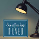 Wir verfügen über eine neue Adressenumlaufskarte für ein modernes Business oder ein schicke Unternehmen, das seine Kunden an einem neuen Standort aktualisieren möchte. Unser Büro ist umgezogen. Klassische, minimalistische Typografie auf schlichten blauen und weißen Karten für Ihr Unternehmen. Passen Sie die Adressenänderung auf der Rückseite an.