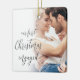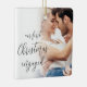 Unsere ersten Weihnachts Verlobten Script Custom Foto Namen. Ein völlig individualisierbares Design speziell für die Feier der ersten Weihnachtsfeier des glücklichen Paares nach ihrer Verlobung und Memento für den Baum in Weihnachten zu kommen. Ein wunderschönes Kalligraphieskript für den Text auf der Vorderseite und Namen auf der Rückseite. Einfach mit Ihren Namen und dem Jahr personalisieren und das Beispiel-Foto durch Ihr eigenes ersetzen. Ein Gradientenüberlagerungsschicht befindet sich oben auf Ihrem Foto, sodass er beim Erreichen des Zentrums verblasst, wobei der Text teilweise überlagert ist.