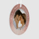 Schöne und magische Verlobung halten Sake Foto-Ornament zu Ihrem ersten Weihnachten verlobt. Das Design ist mit einem Imitat Rose goldener Hintergrund "Unser erstes Weihnachten" gewölbt um das Ornament. "Verlobt" wird in einem eleganten Skript angezeigt. Mit zwei Fotos, einem vorne und einem hinten.