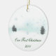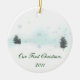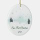Eine einfache aber elegante Landschaft auf einer Verzierung, die "unser erstes Weihnachten" gedenkt.