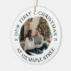 Feiern Sie ein neues Kapitel mit einem weißen runden Keramik-Ornament mit einem Gewölbe mit der Überschrift "OUR FIRST CHRISTMAS", Ihrer Straßenlinie am unteren Ende und einem sanften Foto mit Pinselspitzen. Die geteilten Jahresziffern sitzen für die Ausgewogenheit ordentlich an den Seiten. Aktualisieren Sie die Adresse, geben Sie Ihr Foto ein und Set im Jahr, um ein zeitloses First-Zuhause-Sake oder ein Hauswärmespielgeschenk zu erstellen, das jedem Urlaubsstil entspricht.