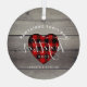 Unser First Christmas Together Rustic Personalisiert Glass Ornament ist eine großartige Geschenkidee. Es ist modern eingerichtet mit einem Holzfußboden aus Imitat und einem karierten Büffel in der Mitte. Der Text ist "unser erstes Weihnachten zusammen" in weißem, trendigem, handgeschriebenem Skript, gemischt mit einfachen Schriftart-Buchstaben. Angepasst mit Jahr- und Paarnamen.