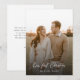 Feiern Sie Ihre erste Jahreszeit als Mr. und Mrs. mit dieser romantischen und einfachen Urlaubskarte. Dieses Design mit einem vollwertigen Foto-Layout, elegantem Drehbuch und einer warmen neutralen Farbpalette eignet sich perfekt für Neuvermählte, die eine minimalistische Ästhetik Liebe. Ob Hochzeitsjahr oder erster Urlaub zusammen, diese Karte fängt zeitlos das Wesen von Liebe und Freude ein - ein wunderschöner Sake, den Sie mit Familie und Freunden teilen können.