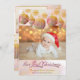 Unsere erste Weihnachtsankündigung 2-in-1 Geburt und Urlaubskarten. Personalisiert mit 3 Ihrer Lieblings-Baby-Fotos, Babyname, Geburtsdatum, Weihnachtsbotschaft, Abzeichen und Namen. Das Design umfasst Urlaubsschmuck, Schneeflocken und Vintage Schrift für "unsere ersten Weihnachten". Es hat eine goldene Farbpalette, eine weiche Bordeaux und eine Art irrisierendes Aussehen mit Aquarellnebel.