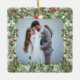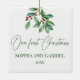 Elegante Weihnachtsschmuck und Sake für Neuvermählte. Auf der einen Seite ein beliebtes Hochzeitsfest, umgeben von Weihnachtsblättern, mit Aquarellmalerei und "Unser erstes Weihnachten" in Kalligraphie-Schrift, die mit Ihren Namen und Hochzeitsjahr (oder Hochzeitstag) auf der anderen Seite personalisiert werden kann.