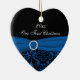 Dieses kobaltblaue und schwarze Damast-Ornament hat ein blaues IMITAT-Band und Juwel-Akzent, dass die Hochzeitseinladung unten gezeigt. Es ist als ein erstes Weihnachten zusammen gehalten Sake. Es wäre ein schönes Beisammensein für Ihren besonderen Tag, oder ein großartiges Geschenk für die Neuvermählten.