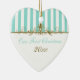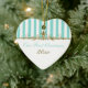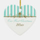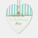 Dieses Aqua Blau und Weiß gestreifte Ornament hat goldene Schriftzüge und ist als First Christmas zusammen Sake angepasst. Es passt zu der unten gezeigten Hochzeitskollektion und wäre ein schönes Stück Ihres besonderen Tages, oder ein großartiges Geschenk für die Neuvermählten.