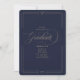 Erzählen Sie Ihren Abschluss stilvoll mit unserem Classic Script ohne Ankündigung des Fotos. Der zeitlose Header liest "Graduate" in einer klassischen und eleganten Typografie über einer Marine. Es funktioniert sowohl für die Oberstufe als auch für den Uni-Abschluss. Personalisieren Sie Ihre Graduiertenbezeichnung, Text und geschlossen Jahrgangsklasse. Auf der Rückseite der Karte befindet sich ein zusätzlicher Vorlagenraum für eine weitere Nachricht für Freunde und Familie. Wenn Sie diese nicht benötigen, können Sie sie löschen. Benötigen Sie passende Stücke, die nicht in der Sammlung sind?