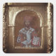 Die byzantinische Ikone unseres Herrn Jesus Christus, die im Orden von Melchisedek, der das Evangelium des Heiligen Johannes hält, für immer als Hohepriester dargestellt wird, öffnete am Vers 10:11, der den lateinischen Text zeigt: 'Ego sum pastor bonus. Pastor bonus animam suam dat pro ovibus suis' (Ich bin der gute Hirte: der gute Hirte gibt seinem Leben für die Schafe).