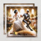 Schöne, elegante Blumen Hochzeit rett-the-date-Karte. Liebliche Braut und Bräutigam mit einer blumigen Hochzeit von ihnen beide springen über den Besenstiel. Eine afrikanisch-amerikanische Vorfahren-Tradition. Ein Sprung über den Besenstiel symbolisiert den lass der Vergangenheit und das gemeinsame Entstehen eines neuen Lebens.