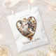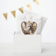Sehr schöne, herzförmige Wohlfühltüten mit einer schönen afroamerikanischen Braut und einem schönen Bräutigam. Das Hochzeitsbild ist ein elegantes Blumendesign, bei dem Braut und Bräutigam über den Besenstiel springen. Springen über den Besenstiel, der den lass der Vergangenheit symbolisiert und ein neues Leben als Ehemann und Ehefrau einleiten.
