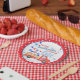Unser kleiner Brustwarzer dreht eine Platte Pappteller