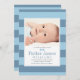 Ankündigen Sie die Ankunft Ihres Babys im Stil mit klassischen und einfachen Geburtsankündigungskarten, die mit einem Foto Ihres Babys gerahmt sind, das durch prächtige horizontale Streifen und einen kleinen Akzent in der Krawatte des Bugs entsteht. Cloud Blau, Schieferblau, Holzkohle grau und Weiß.