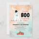 Diese schöne Party Einladung zum Halloween-Thema ist ideal für einen kleinen Jungen. Es verfügt über eine bezaubernde Geistergrafik mit einer aquamarinen Bogen-Krawatte und einem Oberhut, ergänzt durch den spielerischen Text "Unsere kleine Boje dreht zwei".