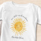 Dieses bezaubernde Baby-T-Shirt zeigt eine gelbe lächelnde Sonne und den Ausdruck "Unser kleiner Sonnenschein" in stilvoller Schreibmaschinentypografie. Es ist leicht anpassbar. Original-Wasserfarbe © Michele Davies.