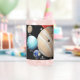 Dieses Design repräsentiert unser Sonnensystem mit allen acht Planeten und den größten und dichtesten ihrer Monde. Jeder Planet und seine Monde sind gekennzeichnet. Inspirier, mit diesem schönen, farbenfrohen Design über den Planeten, auf dem wir leben, die Erde, sowie Jupiter, Saturn, Merkur, Venus, Mars, Uranus und Neptun zu lernen. Oder, seien Sie nur der coolstste Nerd auf dem Block. Die Reihenfolge und Größe der Objekte in diesem Design sind lediglich repräsentativ und nicht vollständig genau.