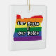 Dieses farbenfrohe Kunstwerk zeigt den Staat von Oregon, der aus einem Regenbogen hergestellt wurde.