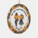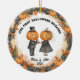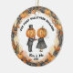 Feiern Sie Ihr erstes Halloween 2025 als Paar mit diesem charmanten Pumpkin Wedding Ornament mit Kranz! Mit einem skurrilen Aquarell-Design einer Kürbisbraut und Bräutigam-Austauschring, gerahmt durch einen Kranz aus Herbstblättern, Kerzen und Kürbissen. Ideal zum Gedenken an Ihre Verlobung oder Hochzeit, ist dieses Ornament ideal zum Aufhängen auf Ihrem Baum oder als herzlicher Pfarrer. Personalisieren Sie es mit Ihren Namen oder einem besonderen Datum für eine einmalige Touch. Ideal für Halloween-Liebhaber und Neuvermählte - bestellen Sie sich jetzt, um dieses 2025 Gedächtnis zu schätze!