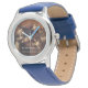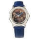Kinderuhr aus Edelstahl mit blauem Lederarmband