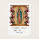 Auf einer mit Rosa und rote Rosen auf beiden Seiten umrahmten Schriftrolle, die ein wunderschönes, traditionelles katholisches Bild der Gottesmutter von Guadalupe zeigt. Alle Texte und Schriftart sind auf Spanisch und können geändert werden.
