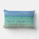 DIE DEKORATIVE LUMBAR DURCH DEN PILLOW BIETET DAS FOTO DES BLAU-GRÜNEN KARIBISCHEN WASSERS UNTER EINEM BLAUEN HIMMEL. DIE QUOTE: "UNSERE ERINNERUNGEN DES OZEANS WERDEN LANGE NACH UNSEREN FUSSDRUCKEN VERLÄNGERT" ERSCHEINT AUF BEIDEN SEITEN. SIE KÖNNEN IHRE STRANDHAUS-DEKORATION ODER JEDEN ORT, WO SIE EINE ENTSPANNTE STRANDATMOSPHÄRE ERSCHAFFEN WOLLEN, HINZUFÜGEN.