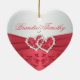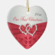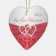 Dieses korallenrote rosa und graue Blumenceramice Herz hat geformte Verzierung korallenrote Bänder des Imitats und glittery jewelled verbindende Herzen und bringt die Hochzeitseinladung zusammen, die unten gezeigt wird. Sie würde ein nettes Andenken von Ihrem speziellen Tag oder ein großes Geschenk für die Jungvermählten machen.