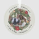 Elegante und moderne personalisierte Weihnachtsschmuck mit schönem Weihnachtsschrei. Personalisieren Sie das Produkt mit dem Jahr, dem Familiennamen und zwei Ihrer liebsten Hochzeiten Fotos.