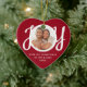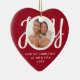 Dieser festliche, herzförmige Erstweihnachtssaal mit den Keramiken Mr. & Mrs. Foto ist mit dem Wort "JOY" in der stilvollen Schrift-Typografie dekoriert. Einfach anpassbar.