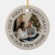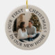 Markiere den Zug mit einem gemütlichen Sake. Dieses runde, neutrale Keramik-Ornament enthält eine Bogenführung mit der Überschrift "UNSERE ERSTEN CHRISTMAS" unten mit der Überschrift "IN UNSERER NEUEN ZUHAUSE", die ein weiches Foto mit Pinselspitze umrahmt. Seitliche Ziffern für ein geteiltes Jahr sorgen für ein sauberes, ausgewogenes Layout. Der warme Grauton und die klassische Serifenart passen zu jedem Baum, jeder Mantelanzeige oder jeder Geschenkboxen. Lassen Sie sich das Jahr über von Ihrem Lieblings-Wohnzimmer-Schnappschuss und Set verführen, um jeden Dezember Ihren Neubeginn zu feiern.