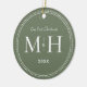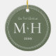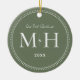 Unser erstes Weihnachtsgeschenk frisch verziert Monogram Sage Green Keramik Ornament. Die gepunktete Grenze erinnert an Milchkorn, eine Schmuckdetailtechnik, die häufig für Verlobung und Hochzeitsringe eingesetzt wird. Die gepunktete Grenze verleiht diesem Ornament einen eleganten Stil.