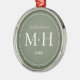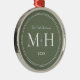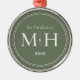 Unser erstes Weihnachtsgeschenk frisch verziert Monogram Sage Green Metal Ornament. Die gepunktete Grenze erinnert an Milchkorn, eine Schmuckdetailtechnik, die häufig für Verlobung und Hochzeitsringe eingesetzt wird. Die gepunktete Grenze verleiht diesem Ornament einen eleganten Stil.