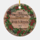 Unsere erste Weihnachtszeit verlobt, auf rustikalem Holz und Beeren Keramik Ornament Fügen Sie Ihren eigenen Text, Namen und Jahr und schaffen Sie ein sehr persönliches und einzigartiges Ornament, um Sie Weihnachtsbaum zu schmücken.