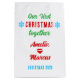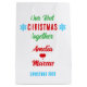 Unsere erste Weihnachten zusammen Snowflakes Geschenktasche. Personalisierte große Tasche mit modernem und trendigem Typografie-Sprichwort Unser erstes Weihnachtsfest zusammen, 3 Schneeflocken und Namen. Fügen Sie Ihre Namen hinzu und machen Sie ein hübsches Geschenk für einen Freund oder eine Freundin.