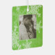 Schönes, modernes und trendiges festliches Muster mit weißen Schneeflocken auf grünem Hintergrund mit individualisierbarem Foto und "Unser erstes Weihnachtsgeflecht". Das Design beinhaltet den Familiennamen und das Jahr leicht zu personalisieren. Er ist grün und mit weißen Schneeflocken verziert, die seine Oberfläche bedecken. Die Schneeflocken sind mit feinen Linien detailliert, was einen extravaganten Spitzeneffekt erzeugt. Der Text ist in einem fließenden, kursiven Skript geschrieben, das der Dekoration eine personalisierte Touch verleiht. Der Gesamtstil ist charmant und fröhlich, mit einem klaren Thema für den Urlaub. Perfektes Weihnachtsgeschenk, personalisierbar mit eigenem Text. Ideal für ein Paar, das gemeinsam ihre ersten Weihnachten verbringt, ein Sake, der gemeinsam als verheiratetes Paar an die erste Urlaubssaison erinnert, nach der Hochzeit zu kaufen, um diesen besonderen Augenblick zu feiern.