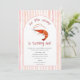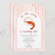 Diese individuell anpassbare Einladung zum ersten Geburtstag enthält ein Aquarellbild eines niedlichen Garnelen mit der Aufschrift "Unsere kleine Garnele verwandelt sich!".