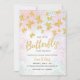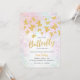Feiern Sie eine süße Ankunft mit diesem Baby-Shower-Design „Our little butterfly is on the way“ (Unsere kleine Schmetterling ist auf dem Weg), akzentuiert mit goldenen Glitter-Schmetterlingen und sanften pastellfarbenen rosa und violetten Wasserfarben. Perfekt für eine Babygirl-Party und die Feier für die werdende Mutter.