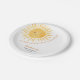 Planen Sie eine Babydusche zum Thema Sonne? Auf dieser niedlichen Babyduschplatte steht "Unser kleiner Sonnenschein ist fast hier" in stilvoller Schrift-Typografie mit einer lächelnden gelben Aquarellsonne. Einfach anpassbar. In meinem Geschäft sind passende Papierservietten und Tassen. Weil wir unsere Kunstwerke erstellen, werden Sie dieses exakte Bild von anderen Designern nicht finden. Original Wasserfarbe © Michele Davies.