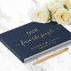 Elegantes, dunkelmarineblaues Gästebuch mit echter Goldauswahl, Silbersilber und Rose, "Unsere Lieblingsmenschen" in einer Mischung aus einfacher Typografie und einem schicken Drehbuch mit Wimpern, romantisch verbunden mit einem Herz und Ihrem Hochzeitstag. Personalisieren Sie Ihren Titel auf der Wirbelsäule und fügen Sie ein Foto auf der Rückseite hinzu.