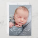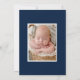 Elegante Geburtsankündigung mit "Unsere neue Liebe", die in einem weißen Skriptüberlagern mit Herzensansichten auf beiden Seiten gezeigt wird. Personalisieren Sie die einfache Geburtsankündigung mit einem vertikalen, neugeborenen Foto, dem Namen des Babys, den Geburtsstatistiken und werden Sie von Informationen empfangen. Die Ankündigung kehrt zurück, um ein zusätzliches Foto mit einem soliden marinen Hintergrund anzuzeigen. Die 2-Foto-Geburtsankündigung eignet sich hervorragend als Valentinstag-Geburtstagsankündigung!