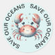 Niedliche Aufkleber mit einem niedlichen Bild eines Krebses in der Mitte. Rett Ozeane in einem Kreis um die Kanten gedruckt. Aufkleber zum Thema Umwelt und Grün. Ideal für all Ihre Stationären, Handwerkskunst oder Schulprojekte. Kleben Sie Ihre Lunchboxen oder Wasserflaschen an.