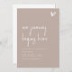 Wenn Sie die Liebe neutralisieren, dann ist diese Stileinladung genau richtig für Sie. Die Einladung zeichnet sich durch ein elegantes Design mit einem weichen, schiefen Hintergrund aus. In der Mitte sind die Details des Party wunderschön in einem modernen Text gestaltet, der ein Gefühl von Eleganz ausstrahlt. Herzlich willkommen zu Ihrer Verlobungsfeier im Stil. Hintergrundfarbe und Text können bearbeitet werden.