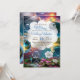 Die lebhaften Farben dieses Designs sind wie eine Feier des Lebens. Die Luftblasen reflektieren den erwachenden Geist aller auf unserem schönen Planeten. Ich habe rosa Wasser Blume mit Pfauen und eine Freientaube für die Einladungen mit Karte hinzugefügt.